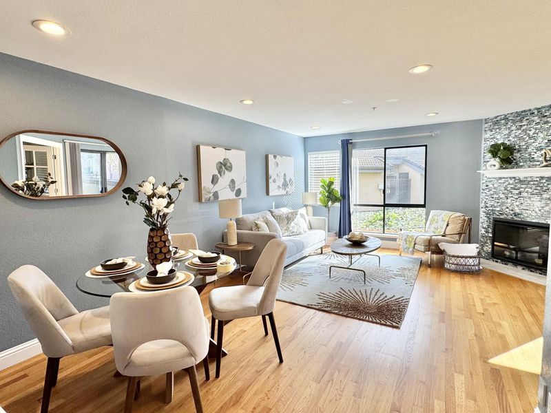 Welcome to this charming 2-bedroom, 1-bathroom home situated in the vibrant city of Fremont. With 844 sq. ft. of living space, this residence offers a cozy and functional layout. The kitchen is well-equipped with modern appliances including an electric cooktop, dishwasher, garbage disposal, and refrigerator, making meal preparation a breeze. Enjoy meals at the breakfast bar or in the dining area conveniently located within the living room. The home features beautiful wood flooring throughout, adding warmth and elegance to the space. Stay comfortable year-round with the window/wall unit cooling and both baseboard and forced air heating systems. The inviting living area is complemented by a fireplace, perfect for cozy evenings. Laundry is made easy with the in-unit washer and dryer, along with a 220V electricity hookup. An attached garage provides parking and additional storage space, making this home a practical choice. Don't miss the opportunity to make this delightful Fremont home your own!