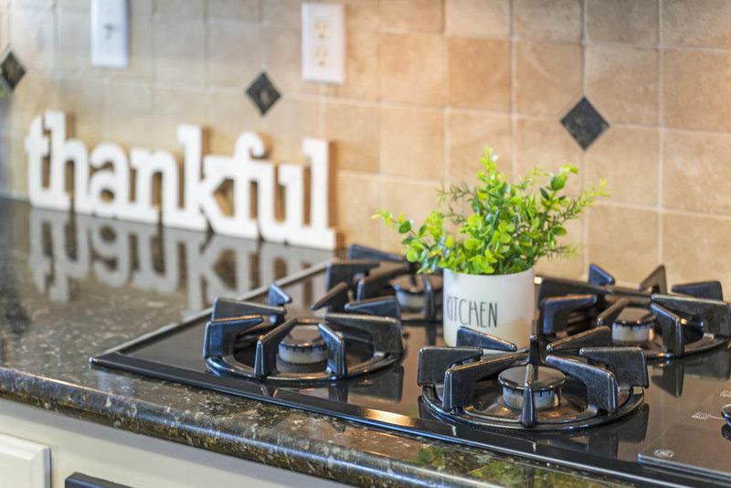 - Cooktop - Gas, Countertop - Granite, Dishwasher, Exhaust Fan, Garbage Disposal, Hood Over Range, Hookups - Ice Maker, Island, Microwave, Oven - Built-In, Pantry