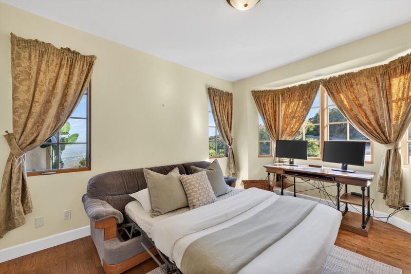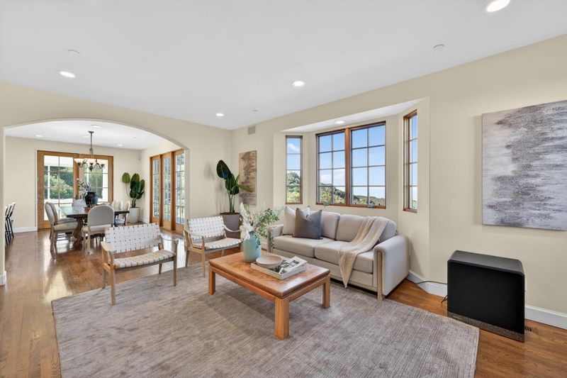 This French Country inspired residence offers rare serenity just minutes from top Cupertino schools, shopping, and major employers. A scenic 20 minute drive from Silicon Valley brings you to a private hilltop retreat nestled on ~10 acres along an exclusive road. Enjoy breathtaking ~270° panoramic views of the San Francisco Bay and the Santa Clara Valley - lush green hills by day, shimmering city lights by night, and a stunning above the clouds vantage when valley fog settles below. The 4bd/3ba home features a light-filled floor plan, main-level bed/bath, and an upstairs primary suite with a walk-in closet and spa-like bath. The kitchen offers premium stainless appliances, abudant cabinetry and countertop space. The main level includes a private office area and a sunroom perfect for a reading lounge or inspired workspace . The dining area opens up to the backyard which is ideal for entertaining. An oversized 3-car garage with abundant storage and leased solar complete the offering. Near acclaimed wineries including Ridge Vineyards and over 22K acres of hiking & 10K acres of biking trails, this home offers a perfect blend of luxury and an active lifestyle. Close to Cupertino schools and major employers. Experience refined living where the journey itself becomes part of the reward.