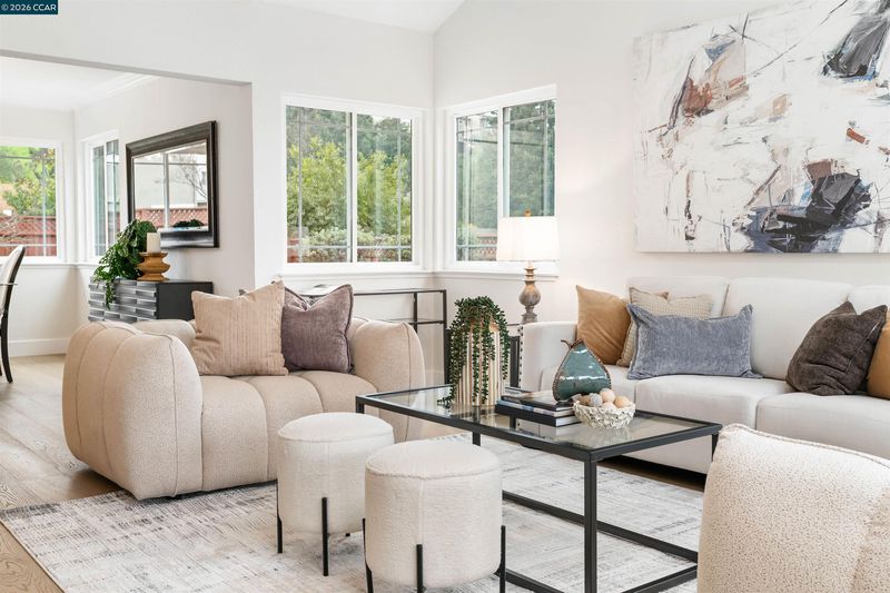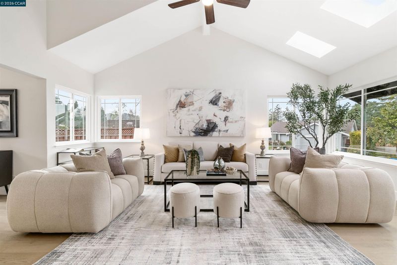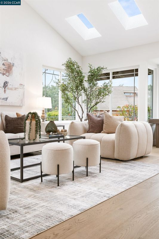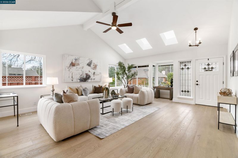 Timeless Architecture and Stunning Curb Appeal create a Grand First Impression! Enter the dramatic living room defined by soaring vaulted ceilings, skylights, & horizontal sliding dual-paned windows that flood the space w/natural light. The heart of the home is a beautifully refreshed kitchen featuring a large bay window, tray ceiling w/recessed lights, stainless appliances including a new cooktop & built-in double ovens. Enjoy mornings in the breakfast nook or host dinners in the adjacent dining area. The cozy family room, centered by a white-washed brick fireplace, flows seamlessly to the trellis-covered backyard deckâyour front-row seat to stunning sunset views. A versatile 1st floor bedroom & bathroom offer the perfect setup. Upstairs, the large Primary Suite is a retreat w/vaulted ceilings, skylight, walk-in closet, & spa-like ensuite featuring a frameless glass shower & bench. Two additional bedrooms share a clever Jack-and-Jill bath. Modern touches include engineered flooring, crown molding, 5.5" baseboards & matte black hardware. 8000 sq ft lot & extra-large driveway. No detail has been spared in this "Hidden Gem"!