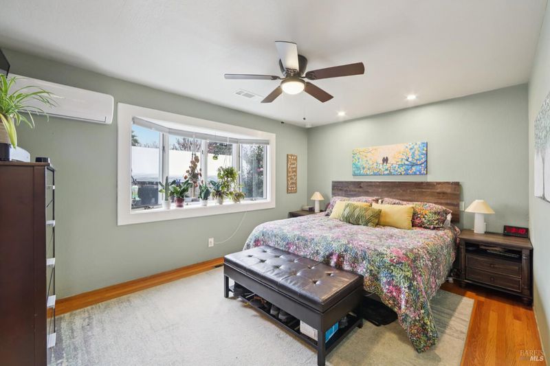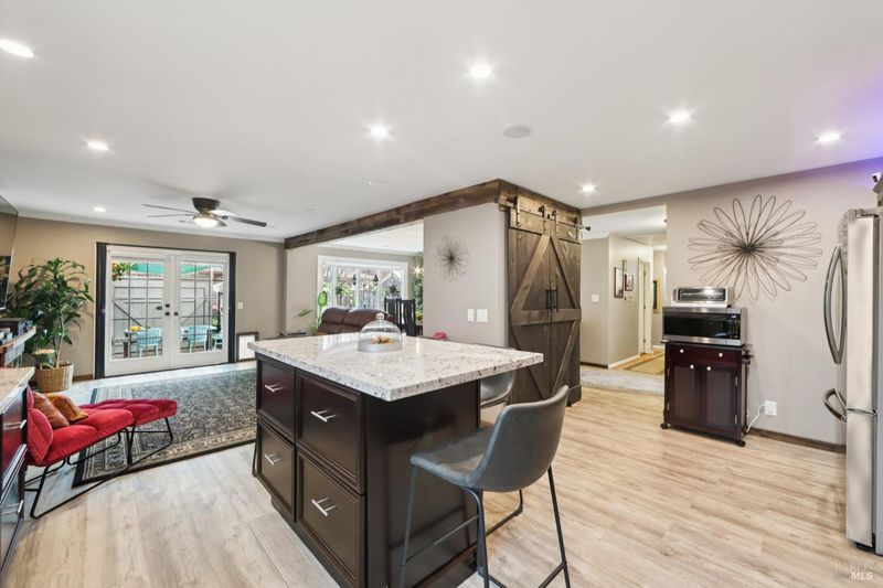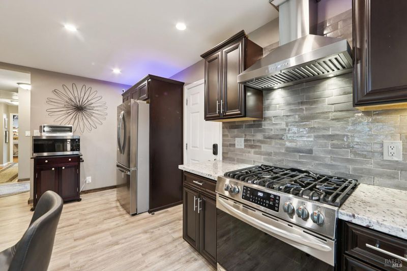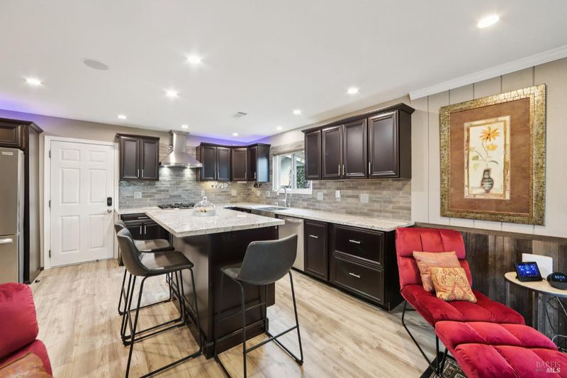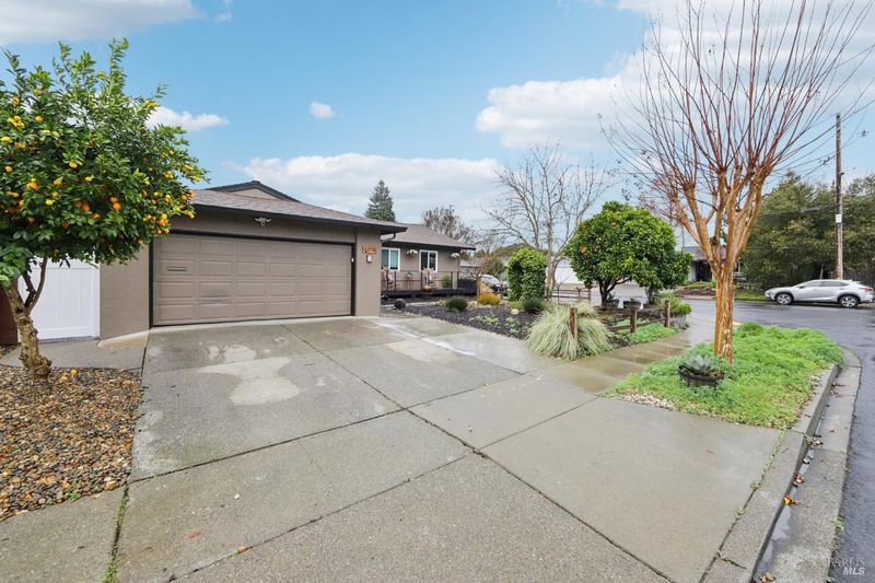 Highly desirable corner property, with paid solar, in a wonderful Napa neighborhood and location. This reimagined four bedroom now includes two ensuite bedrooms, and one has an exterior door, for added convenience. The fully updated kitchen is open to the Family and Dining Rooms, and includes Granite countertops, plenty of storage in the cabinets, upgraded stainless appliances with a stove hood that is more like a work of art, stainless farm sink, a large island with plenty of room to work, or just sit an relax, plus a large pantry. The rest of the house includes gleaming hardwood floors, central heat and air conditioning, recessed lighting, ceiling fans and the Primary bedroom has a lovely Bay Window and its own split unit for localized climate control. All the bathrooms have been updated with care and style. Relax and enjoy either the front or rear decks, or meet whatever the need in either the hot tub or cold plunge. Fruit trees abound, with six varieties, including Passion Fruit, Cherry and Peach, just to name a few. Take advantage of the rear gates with whatever off-street parking needs you may have, or just use the large yard for whatever you have in mind. So much to see, and way too much to mention; you will want to see this one in person today!