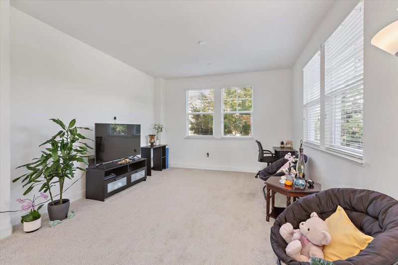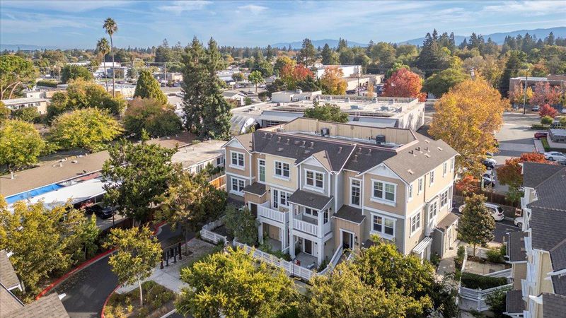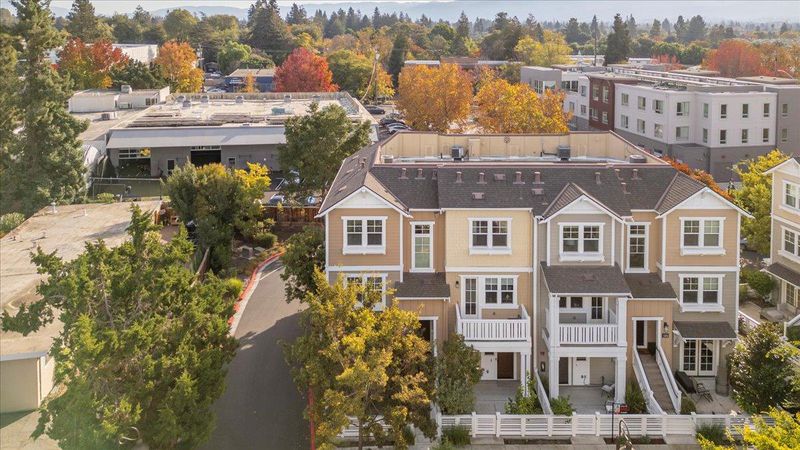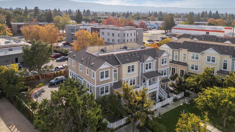 Beautiful end-unit townhome is designed with comfort and elegance. The expansive Great Room features a spacious kitchen, dining area and a generous living space. The modern kitchen is equipped with a large island, pantry with classic door, and opens to a balcony. Premium finishes include stone countertops, tile backsplash, and ample cabinetry for all your storage needs. Upstairs, the primary suite offers a luxurious sanctuary with a spacious shower, dual-sink vanity, private water closet, and an expansive walk-in closet complete with organizers to maximize space and functionality. Hall bathroom has shower/tub and dual sink vanity. The ground-level suite provides flexibility and convenience with glass French door opening to spacious patio and bathroom with accessible shower and toilet. Premium features include tile floors in all bathrooms, upper-level laundry, and solar system. Conveniently located near Silicon Valley employment campuses, Heritage Park, Wyandotte Park, Sierra Vista Park, Costco, Safeway, restaurants and 101. Monta Loma Elementary, Crittenden Middle, Los Altos High.