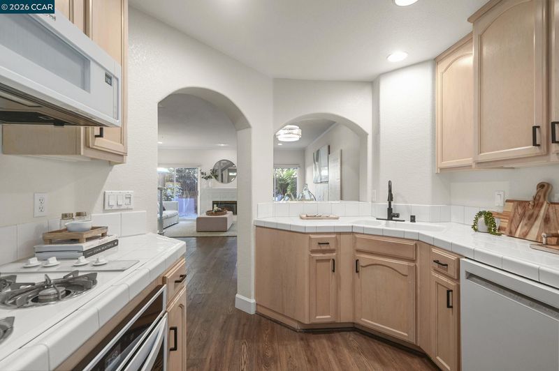 - Dishwasher, Gas Range, Microwave, Oven, Refrigerator, Tile Counters, Disposal, Gas Range/Cooktop, Oven Built-in, Updated Kitchen