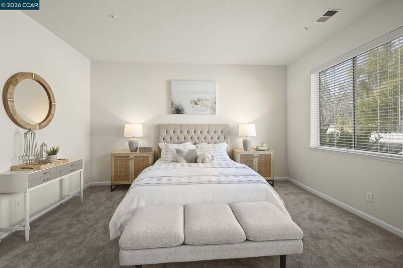 Welcome to 1384 Danville Blvd, a beautifully updated townhouse located in a highly desirable gated community just minutes from the best of Alamo. This thoughtfully designed home features dual primary suites and an ideal layout for comfortable everyday living. The main level offers a bright and inviting open-concept living and dining area filled with natural light. The spacious kitchen provides abundant cabinetry and storage, while a convenient half bath and dedicated laundry room add everyday functionality. Dual sliding glass doors open to a private patio, creating seamless indoor-outdoor flow perfect for relaxing or entertaining. Upstairs, you’ll find two generously sized primary suites, each complete with its own en suite bathroom, offering both comfort and privacy.Home was a 3 bedroom layout but builder made into a 2 for his use. Luxury vinyl plank flooring throughout the main level, neutral paint tones, and updated lighting enhance the home’s modern, move-in-ready appeal. Additional highlights include an