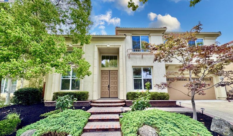 Stunning East facing home in San Ramon’s sought-after Bridges community, surrounded by rolling hills, tree-lined views, and golf courses, offering a peaceful and scenic setting. Tucked away on a quiet street, boasts exceptional curb appeal and a versatile floor plan with a bedroom, full bath and an office on the main level. Soaring vaulted ceilings, fresh interior paint, and brand-new carpet enhance the bright and open feel. A dramatic high bay window in the living room frames the beautiful tree-lined views, filling the space with natural light. The open kitchen showcases double ovens, two sinks, a full backsplash, and a cooktop with center griddle—ideal for everyday living and entertaining. A flexible office with wine cooler can easily convert to a sixth bedroom. All bedrooms are generously sized, including the primary suite with stately double-door entry and his-and-her closets, each with mirrored doors. Additional highlights include a whole-house central vacuum system, water service from East Bay Municipal Utility District, and an expansive backyard offering space to relax, play, and garden. Perfectly located near Coyote Creek Elementary, neighborhood trails, top-rated San Ramon schools, shopping, and freeway access.