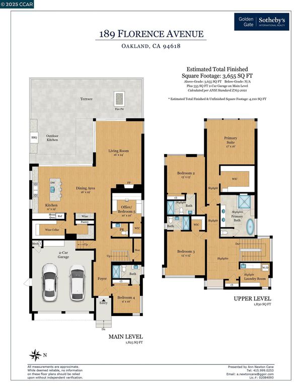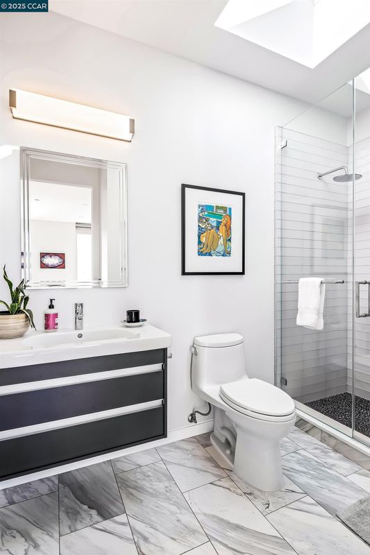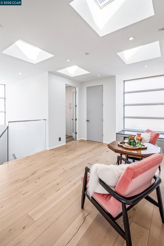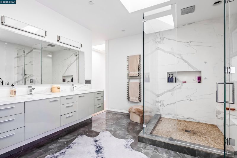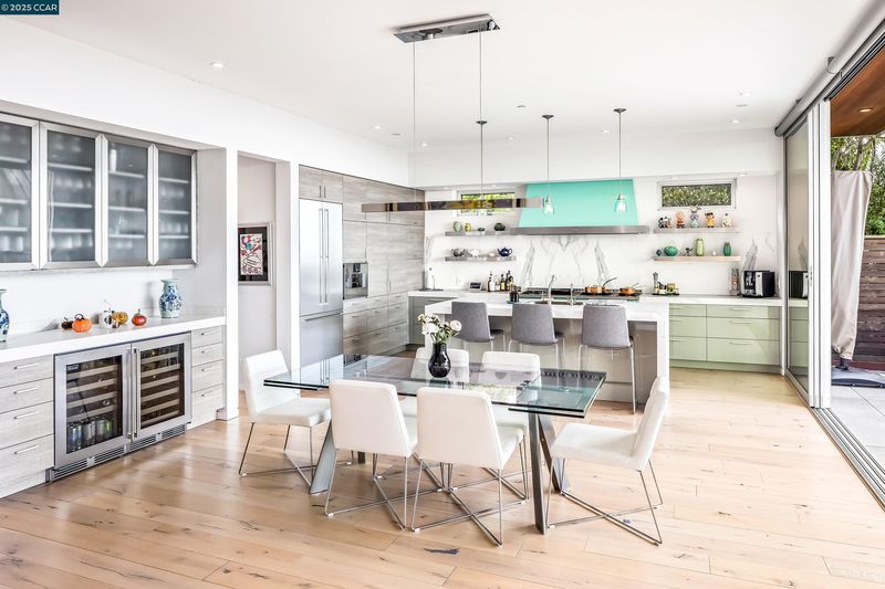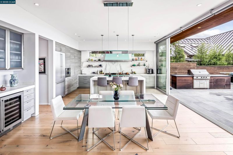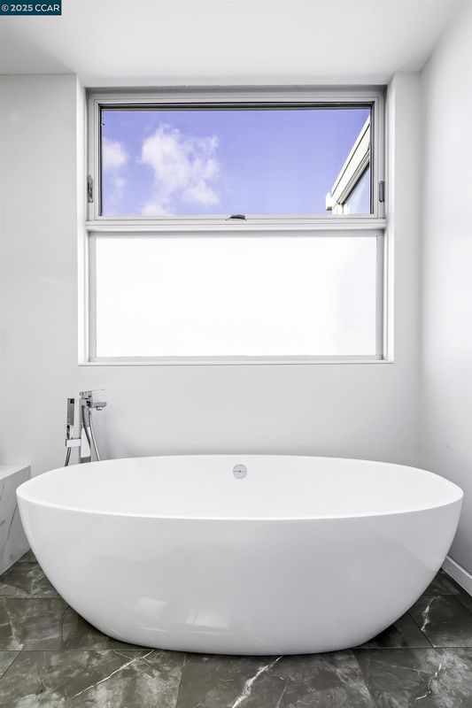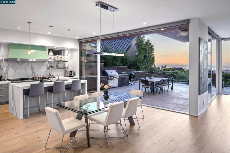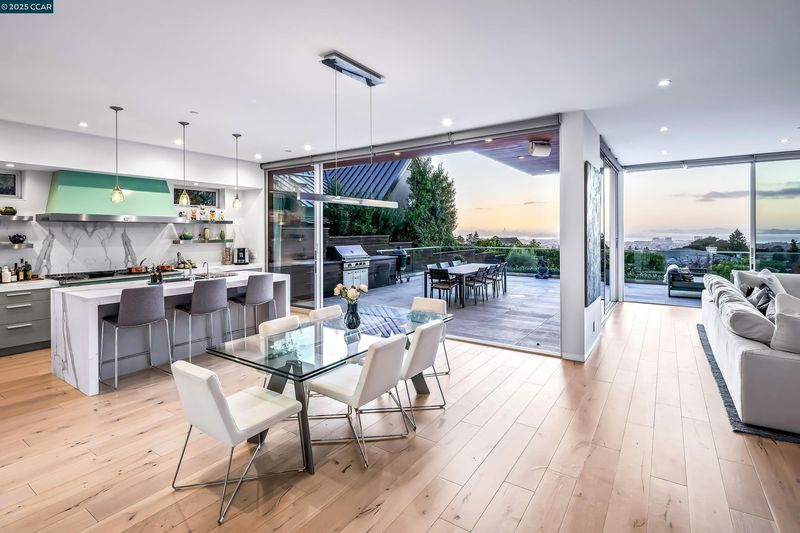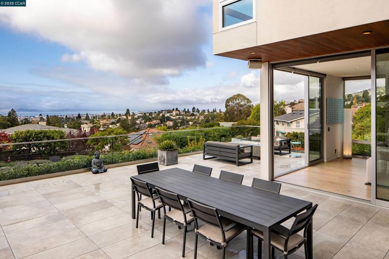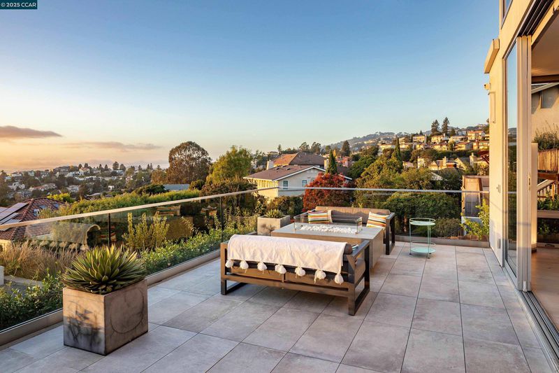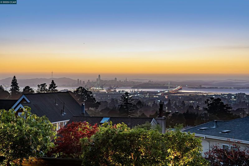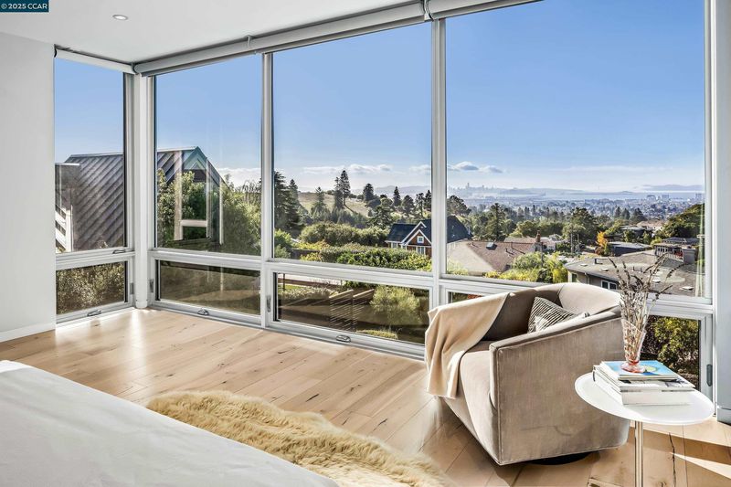 Whoever said “the best views of San Francisco are from Oakland” had this home in mind. It looks across the Bay at the City, Golden Gate, Bay Bridge and Mt. Tam. The kitchen, dining area and living room all look out through 10-ft floor-to-ceiling windows and sliders. The deck is an entertainment hub (with an elite speaker system) for gatherings large and small. The open-concept kitchen has every amenity, including a La Cornue range, Gaggenau steam oven, custom cabinetry, Neolith counters and an island (with seating for 3 at a breakfast bar). A spacious pantry and wine cellar sit adjacent. The Duchateau flooring throughout looks like new. The home offers 4 BRs and 4-1/2 BAs. The bedroom on the lower level is ideal for guests. Upstairs are 3 bedrooms with private baths. The principal suite has unobstructed views of the Bay (as does the adjoining bedroom). Its bath has an oversized rain shower, heated towel racks, soaking tub and dual sinks, all under skylights. Family and friends will gather in the spacious living room, warmed by an oversized fireplace and radiant heating. A well-appointed office on the main floor makes work from home a pleasure. The home also offers a spacious and peaceful garden, 20 solar panels and a car-charging station in the garage.