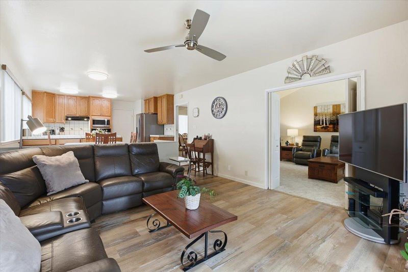 Nestled on a quiet, tree-lined street in a highly desirable neighborhood, this charming single-story home offers comfortable living with outstanding future potential. The well-designed floor plan features separate living, family, and dining rooms, creating flexible spaces ideal for both everyday living and entertaining. The kitchen is both functional and inviting, featuring stainless steel appliances, a dedicated pantry, and a cozy breakfast nook that provides a casual dining option while enhancing the homes thoughtful layout. This property presents exceptional versatility whether you choose to enjoy the home in its current condition, update it to reflect your personal style, or explore expansion possibilities. The backyard offers generous space for outdoor dining, play, gardening, or future customization, and includes a covered patio perfect for year-round enjoyment. Ideally located near parks, shopping, dining, and major commute routes, the home also benefits from close proximity to leading tech campuses and is conveniently within walking distance to schools. A wonderful opportunity to own a single-story residence that blends everyday comfort, functional design, and long-term flexibility.