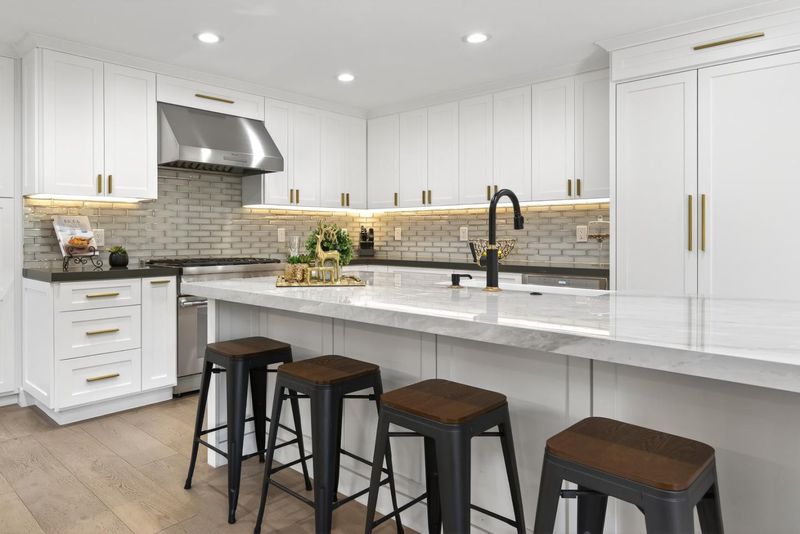 - Cooktop - Gas, Countertop - Marble, Countertop - Quartz, Dishwasher, Garbage Disposal, Hood Over Range, Island with Sink, Microwave, Oven Range - Gas, Pantry, Refrigerator, Wine Refrigerator