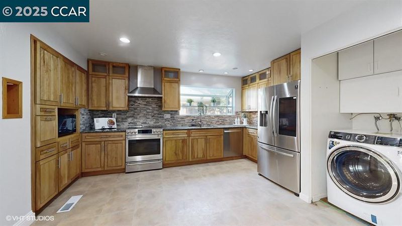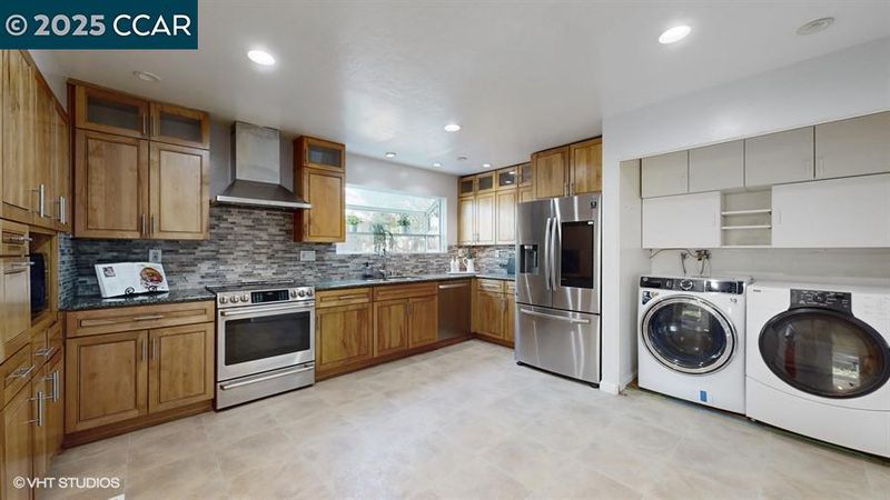 - Dishwasher, Electric Range, Microwave, Refrigerator, Dryer, Washer, Counter - Stone, Electric Range/Cooktop, Updated Kitchen, Wet Bar