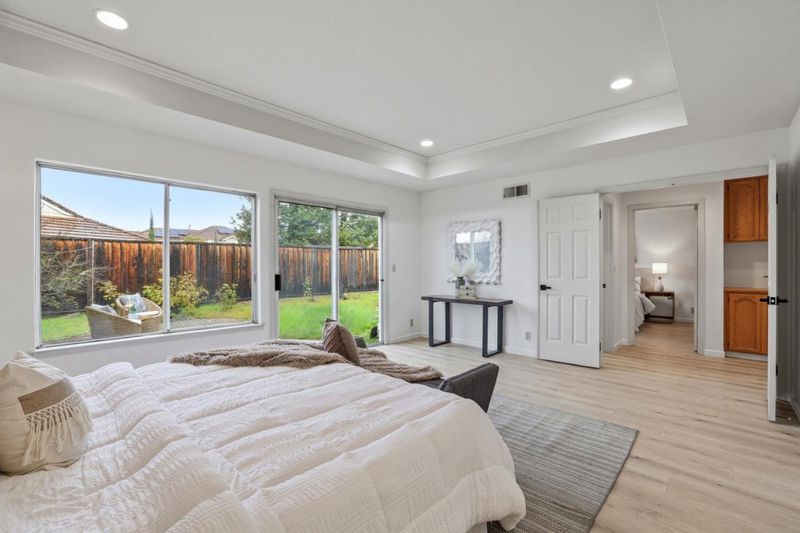 Recent updates are showcased in this 3 bedroom, 2 bathroom home offering 1,827 sq ft of comfortable living space on a 5,985 sq ft lot. The kitchen features new quartz countertops, a new cooktop & refrigerator, updated backsplash, sink, faucet, & cabinet hardware. A tray ceiling adds subtle character, & the eat-in layout includes a slider to the atrium. The living room is filled with natural light & features a vaulted ceiling, recessed lighting, & a fireplace with mantel. The dining area includes a built-in cabinet topped with new quartz, along with a wine refrigerator, while a large slider opens to a private atrium. The spacious primary bedroom offers a peaceful retreat with a tray ceiling, walk-in closet, & a slider leading directly to the backyard. The primary bathroom features a new countertop & faucet, dual sinks, a walk-in shower, & a separate soaking tub. Two additional bedrooms are well sized, including one with three windows that bring in abundant natural light. The hall bathroom has been updated with a new toilet & faucet & includes a shower over tub. Freshly painted interiors, new laminate flooring, & new baseboards run throughout the home. Enjoy access to the community pool. Assigned to highly rated Williams Elementary, Bret Harte Middle School, & Leland High School.