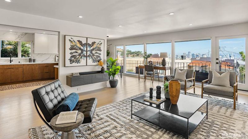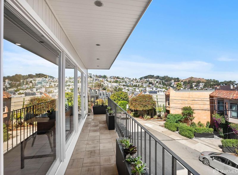 An exceptional condo located between Castro, Noe Valley, and Twin Peaks, with Kite Hill directly behind.This 2-bedroom, 2-bathroom unit features a panoramic window wall with stunning San Francisco cityscape views. The front deck spans the home's width, ensuring the open-plan living room, dining area, and kitchen are filled with natural light. The primary bedroom includes an ensuite bath and opens to a private, deeded patio. This outdoor oasis features a sitting area, hot tub, living wall, retractable canopy, and gate access to a common garden. Both bedrooms are generously sized and both bathrooms have been recently tastefully renovated. Situated on one story above a dedicated one-car garage, the property also includes additional loft storage, a dedicated laundry area, and an EV charger. There is a second parking spot on the driveway. This stylish home offers a desirable alternative to a single-family home. It is also walkable to shops, restaurants, cafes, MUNI, tech shuttle stops, and parks. A must see!
