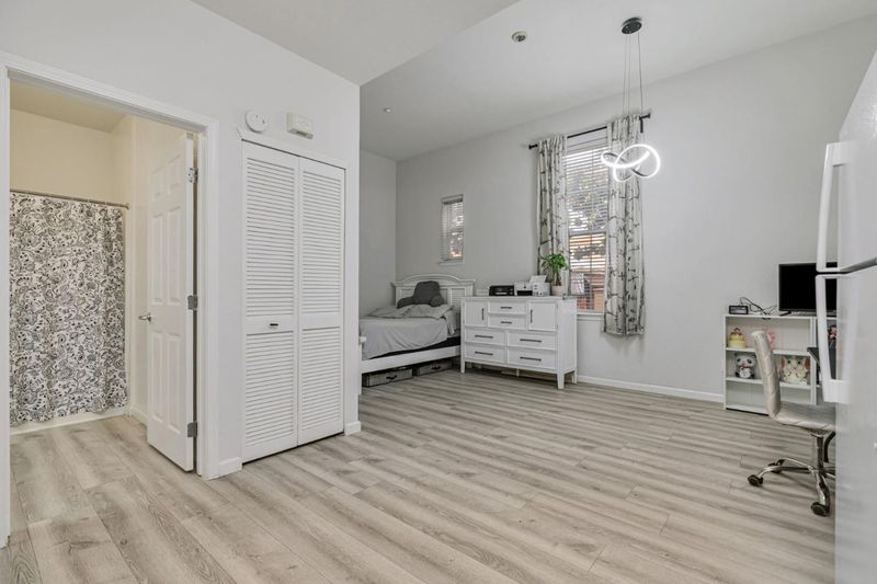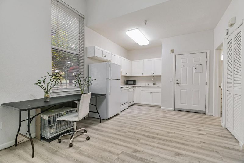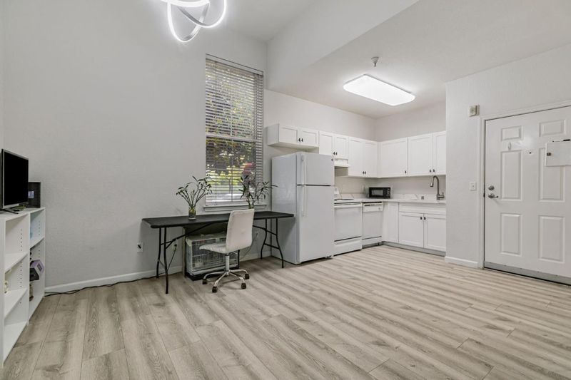 Welcome to this charming ground-floor 1-bedroom, 1-bath condominium in a gated community. Ideally situated near SJSU, this home is perfect for convenient urban living. Step inside to a bright, open layout with high ceilings and modern finishes throughout. The kitchen is well appointed with white cabinets, sleek countertops, an electric range, refrigerator, dishwasher, and a washer/dryer combo. The bathroom features a clean, updated design with a large vanity, modern fixtures, and a shower-over-tub setup. The open living and sleeping area offers flexibility for both relaxation and productivity, enhanced by generous natural light from large windows. Durable LVP flooring runs throughout, creating a modern and cohesive feel. Enjoy a secure entry and a designated mailbox area, along with one assigned parking space and additional street parking for guests. Community amenities include a sparkling pool and beautifully maintained grounds, providing a serene environment in the heart of the city. Commuters will appreciate the easy access to nearby freeways. With SJSU, dining, San Pedro Square, entertainment, and transit options all close by, this home offers the ideal blend of comfort, convenience, and lifestyle. Ideal for students, faculty or anyone looking for a turn-key urban lifestyle!