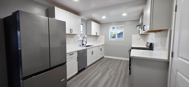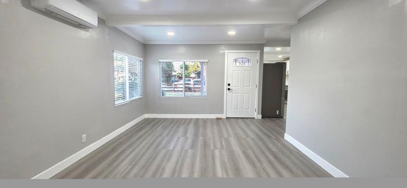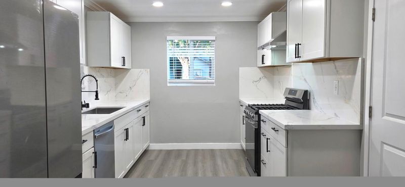 Welcome to this newly renovated single story home. The home has new: designer two-tone interior & exterior paints, luxurious vinyl planks throughout the house, a well-designed kitchen featuring quartz counters, modern Shaker cabinets, LG stainless appliances, recessed lights throughout the house with dimmers, with motion sensor switches in hallway and bathrooms. This home also has new doors, hardware and locks, upgraded switches and receptacles along with USB charger throughout the house, crown molding and baseboards. Upgraded copper pipe plumbing. The living room and the 4 bedrooms have their own cooling/heating system for your comfort and energy saving. There is a 1-car garage and a new concrete driveway which can fits 3 SUVs. New retaining wall and fence provide additional curve-appeal and security. Conveniently located near everything.