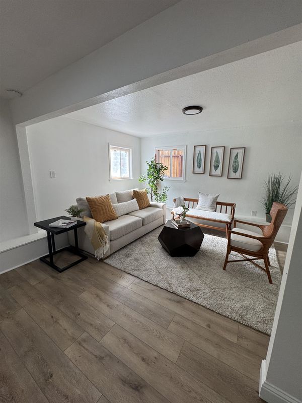 Welcome to this charming Spanish-style home offering space, versatility or income potential. Ideal for multi-generational living, owners seeking to supplement their payment, or investors. Thoughtfully updated with modern touches while preserving its character, this property is ideal for multi-generational living or buyers seeking rental income potential. Upstairs features a bright and open floor plan enhanced by large windows that flood the living spaces with natural light. It offers 3 bedrooms,1 bathroom, updated kitchen showcasing quartz countertops, classic subway tile backsplash, and ample cabinetry, creating a clean and functional space for everyday living. Downstairs is equipped with a second living area complete with its own kitchen, 2 bedrooms, and 1 bathrooms — Both levels include separate laundry areas, providing convenience and flexibility. Bathrooms are finished with stylish tile work, and the home’s thoughtful layout allows for comfortable separation between living spaces. The yard is divided to provide usable outdoor areas for both units, ideal for privacy and functionality. A rare find offering charm, flexibility, and value.
