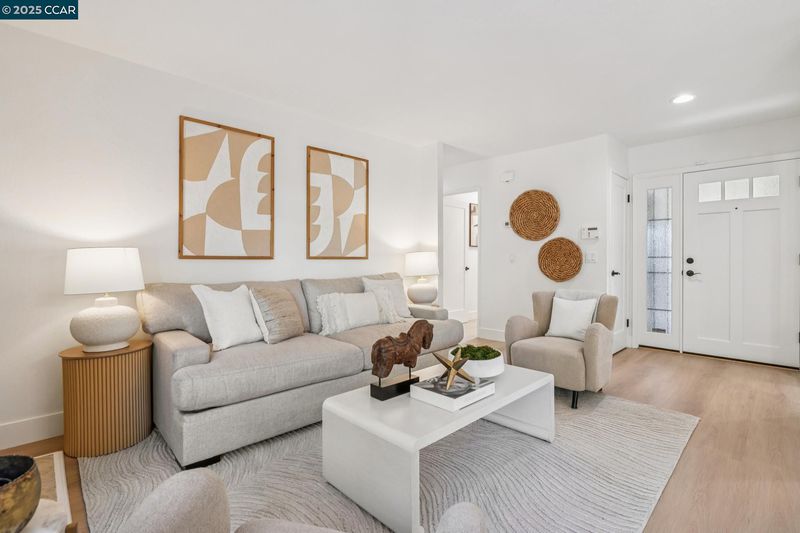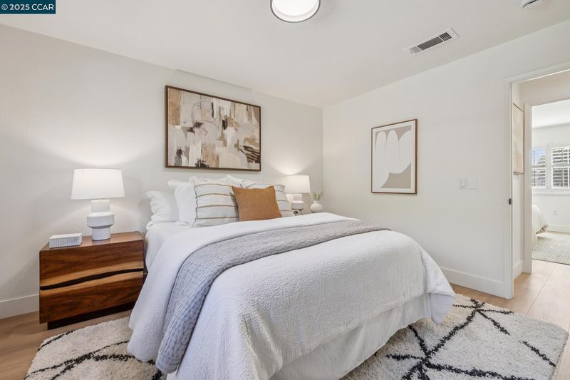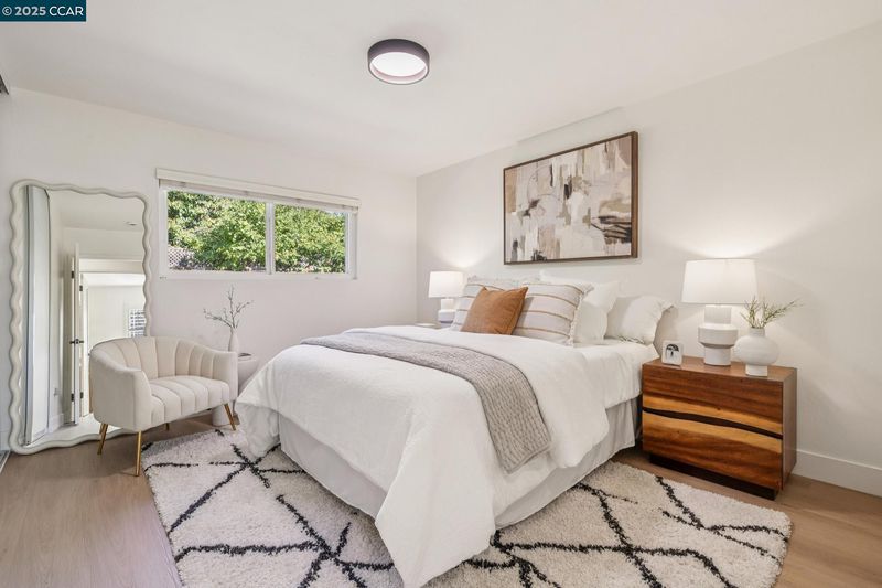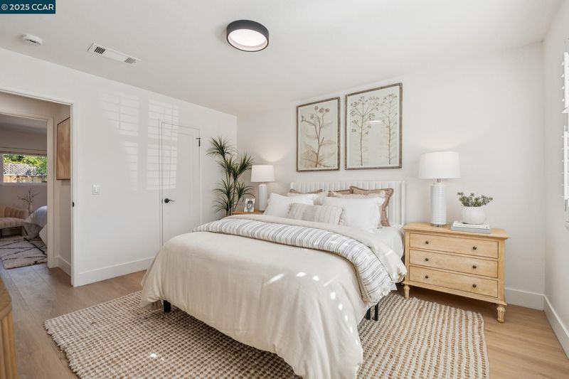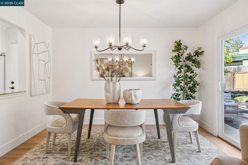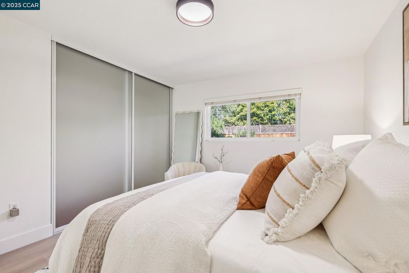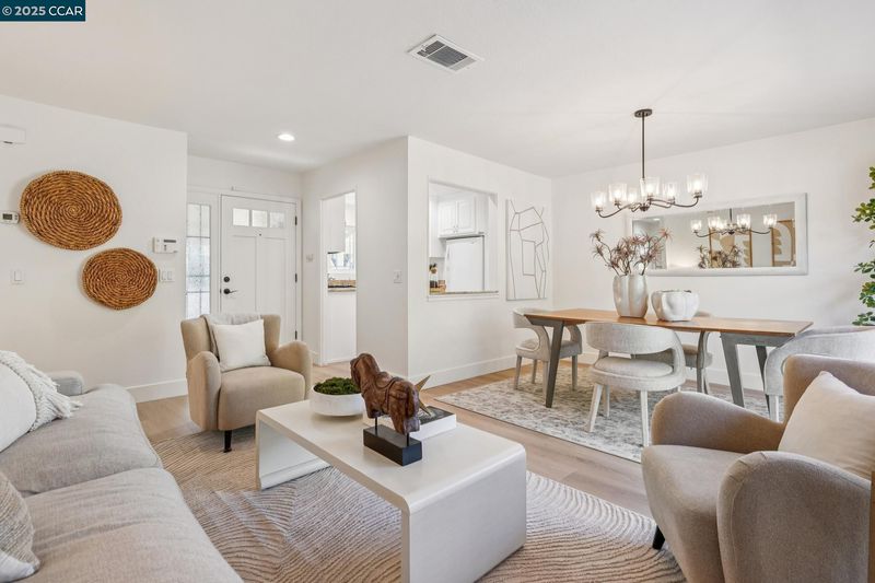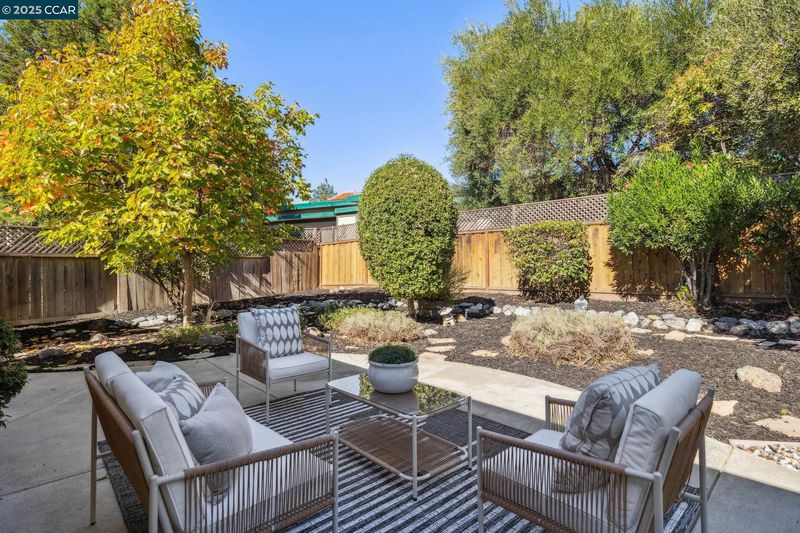 Welcome to this wonderfully updated 2-bedroom, 2-bath single story boasting a two-car garage and prime end of court lot with expansive backyard in the highly desirable 55+ community of Sunny Glen. Charming walkway accented with landscaped grounds leads to front patio and door. Entry opens to the living room, dining room, and kitchen. Living and dining rooms open to one another and feature a sliding patio door to the back-yard– filling the space with sunlight and making indoor/outdoor entertaining flow a breeze. Kitchen features a breakfast bar, slab granite counters, granite backsplash, stainless steel stove, microwave, and sink. Primary suite boasts a walk-in closet and an updated ensuite bath. Secondary bathroom features a single sink vanity and a bathtub. Enjoy outdoor relaxation and entertaining on your expansive, easy care backyard that offers a lush and mature landscaped setting. Fabulous court lot with close proximity to shops, San Ramon Golf Club, and more. Upgrades include dual pane doors and windows, interior doors, lighting, newly installed laminate floors, wide baseboards, and fresh interior paint throughout. Washer and dryer located in spacious two-car garage. HOA fees of $556/annually provide access to the clubhouse, fitness center, and community pool.