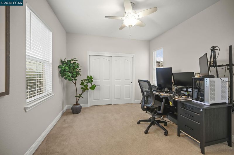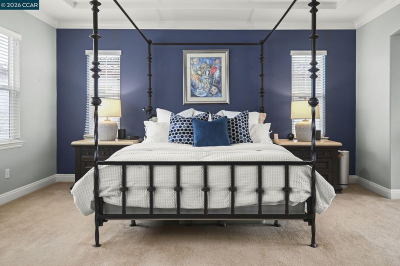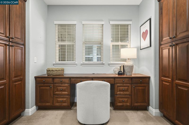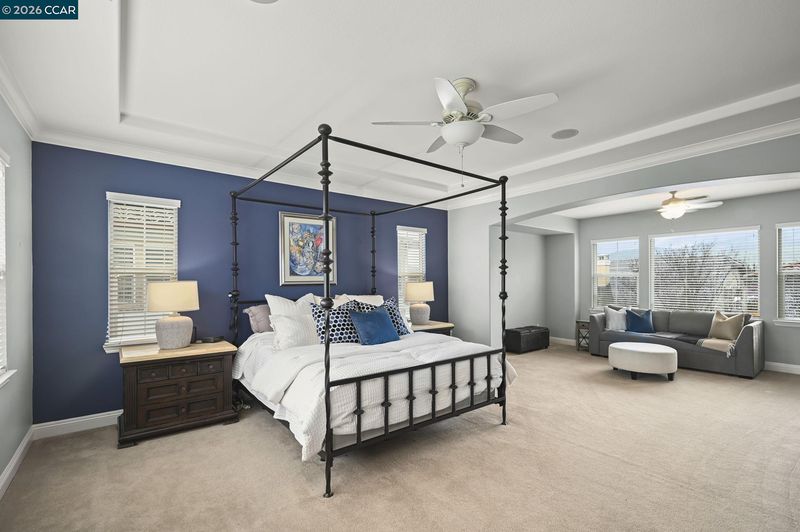 Stunning Monterosso estate offering 4,241 sqft of expansive living space with 6 bedrooms + loft and 4.5 baths, ideally situated on a private corner court lot. The thoughtfully designed floor plan includes a full bedroom and bath on the main level, along with a formal dining room featuring French doors that open to a covered courtyard complete with a fireplace and mounted TV—creating an inviting outdoor living space. A well-appointed butler’s pantry provides additional storage and prep space, seamlessly connecting to the granite kitchen with a large center island and high-end stainless steel appliances. The luxurious primary suite showcases a spacious bedroom with a private retreat, built-in desk with custom cabinetry, dual vanities, soaking tub, walk-in shower, and two oversized closets. Upstairs features Jack-and-Jill bedrooms, a spacious loft, an additional two bedrooms with an adjacent full bath, and a convenient laundry room. Enjoy seamless indoor-outdoor living with a built-in outdoor kitchen, tandem 3-car garage, owned solar, and access to excellent schools.