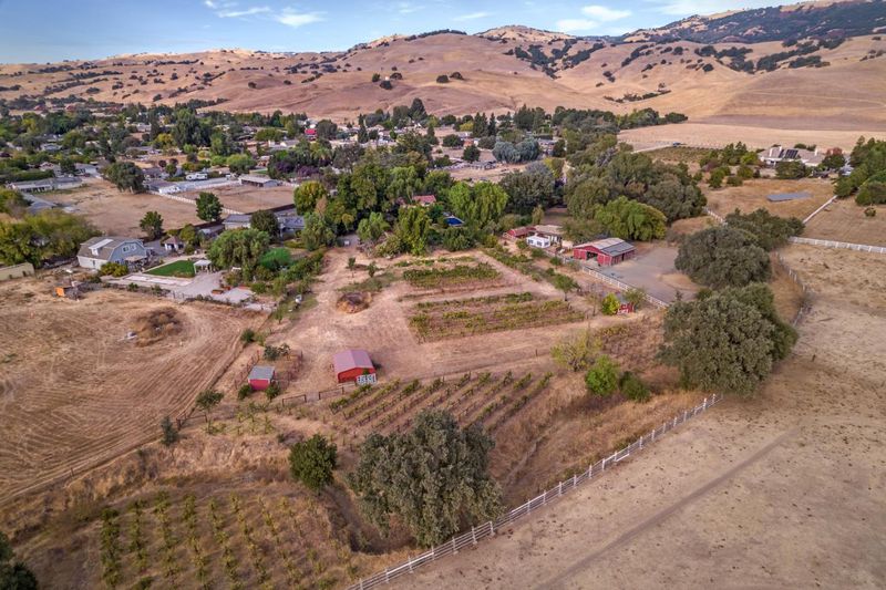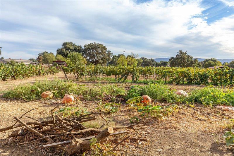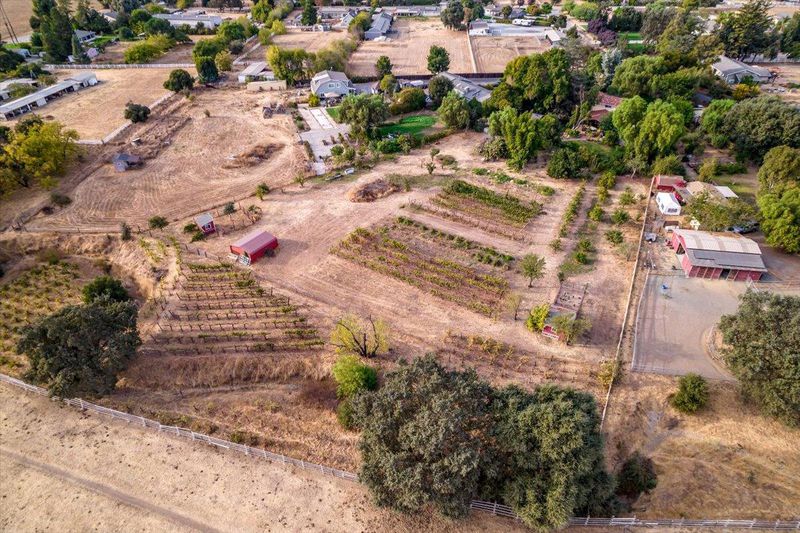 Spectacular Spanish style home in a cul-de-sac location on 2.77 acres with plenty of room for your horse facilities. The living room features a vaulted ceiling, hickory wood floors, wood burning fireplace with stone surround, blower and custom mantel and corbels. The formal dining room is adjacent to the kitchen featuring LG stainless steel appliances and walk-in pantry. Downstairs bedroom and full bath. Additional interior features include Spanish tile floors, knotty alder interior doors, iron stair railing and hickory treads. Alder wood bar with built-in wine refrigerator. Updated windows including a new Anderson slider in the family room in 2024. Wood window shutters and updated insulation in the attic and over garage. A new tile roof was installed in 2007. The rear yard includes a massive freestanding pergola (previously the tasting room), outdoor kitchen with Viking appliances including a wok burner, infrared grill and wood fired pizza oven. The pool liner, filter, heater and pump were replaced in 2024. Several outbuildings, chicken & turkey coops and many fruit trees as well as squash and artichokes in the garden. Previously home to Creekview Winery on the South County Wine Trail. Power to the vineyard which includes 3/4 acre of chardonnay, merlot, cabernet, malbec and zin.
